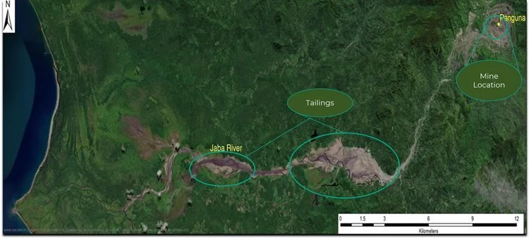 The mine processed an estimated 900,000,000 tonnes of rock over its 13 year life with the waste being deposited into the Jaba River causing massive damage.
